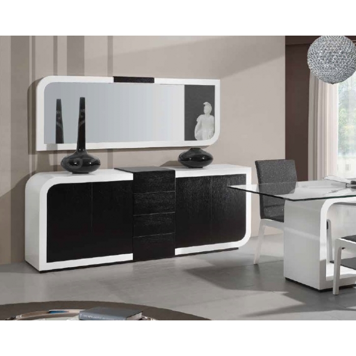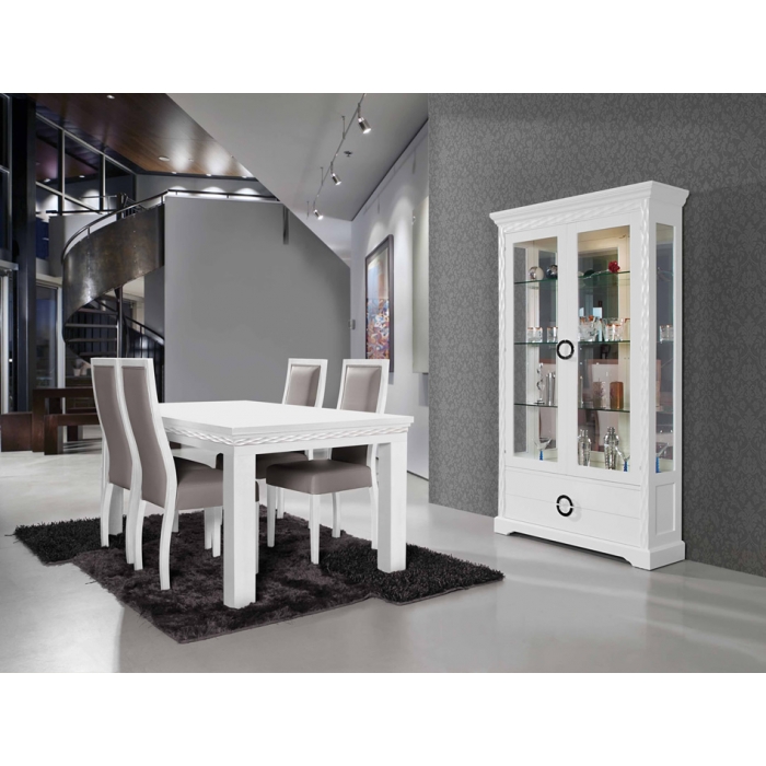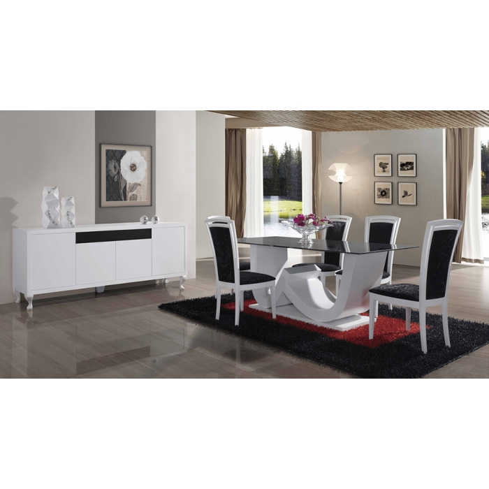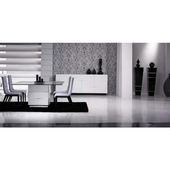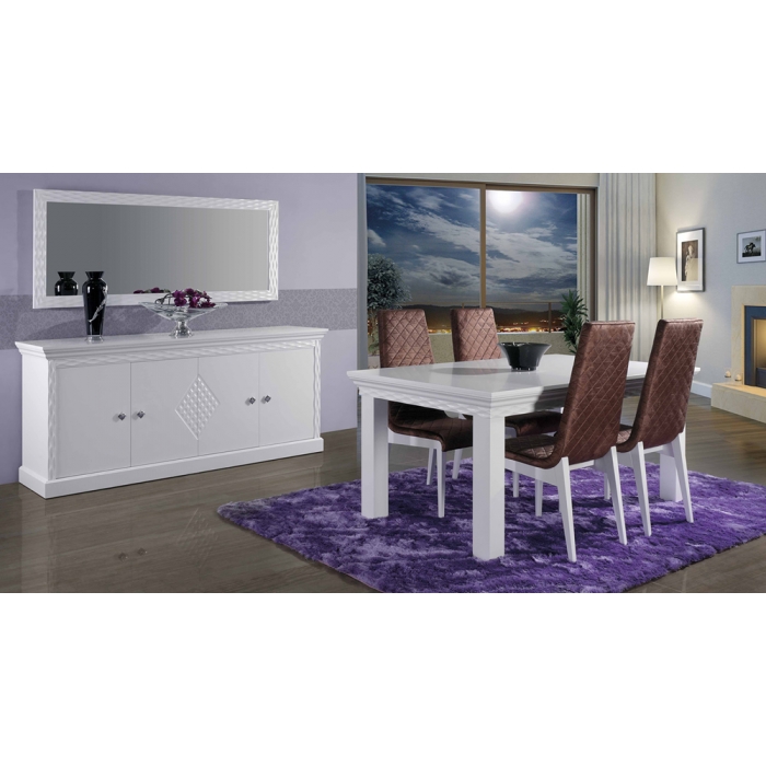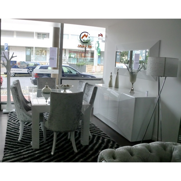 Sala de Jantar MR Alto Brilho Branco Aparador em Lacado Alto Brilho Branco com 200 x 90 x 50. Moldura em Lacado Alto Brilho Branco com 170x80. Mesa de jantar em Lacado Alto Brilho Branco com 179 x 75 x 100. Cadeira R2 em Veludo virodo 272 com pés Lacados com 56 x 44 x 45/100. Ver detalhes