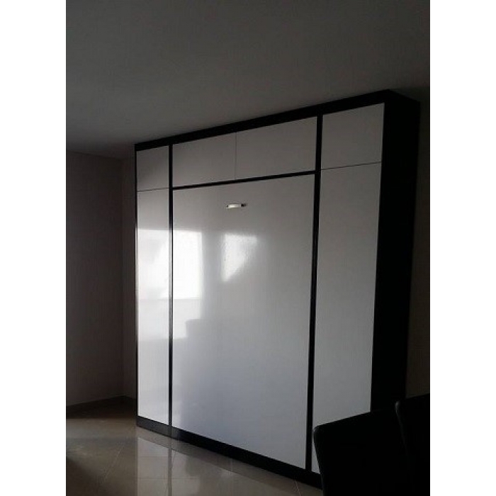 Roupeiro com estrutura elevatória Roupeiro em Lacado Branco + Carvalho Preto com estrutura elevatória para cama. Ver detalhes