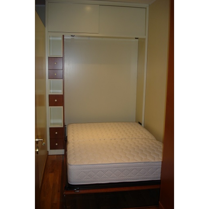 Roupeiro com estrutura elevatória Roupeiro em Lacado Branco com 70% de brilho + Cerejeira com estrutura elevatória para cama. Ver detalhes