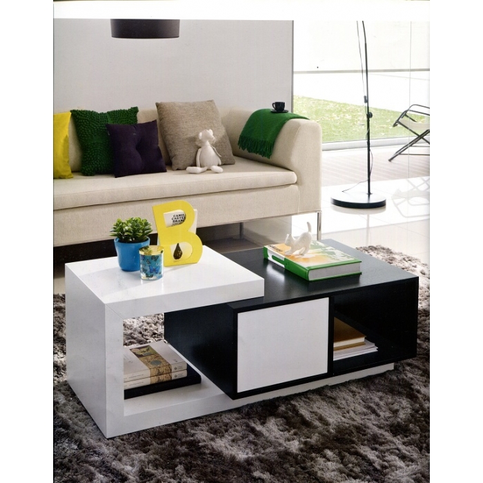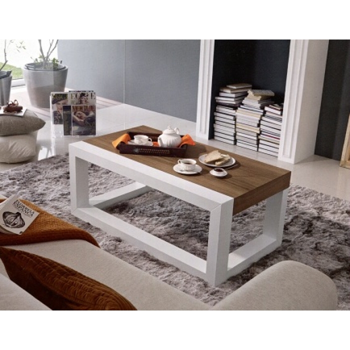 Mesa de centro 01 SARMSC 47 Mesa de centro fixa com 100X45X60 em Lacado Branco Mate + Nogueira. Ver detalhes