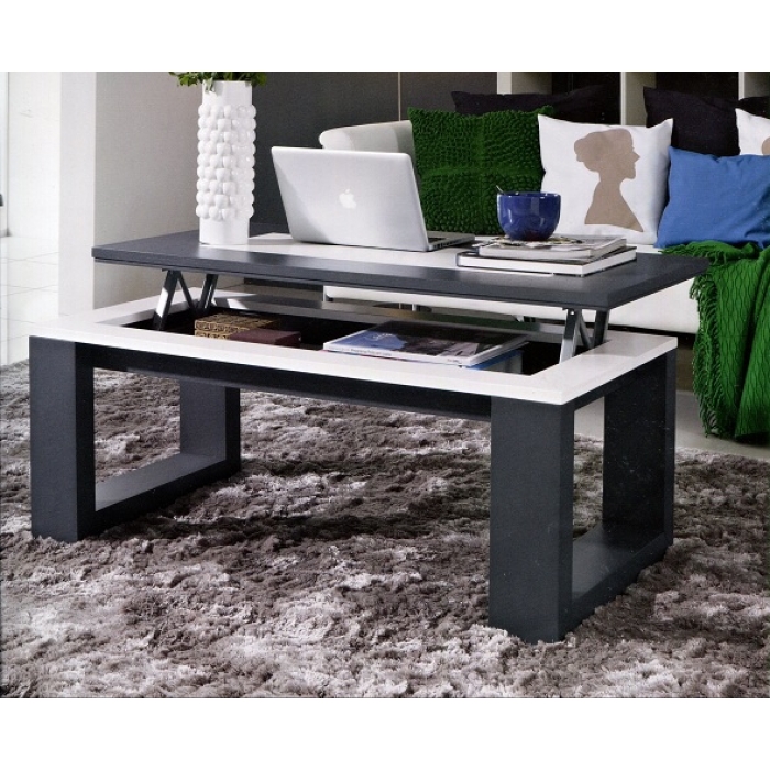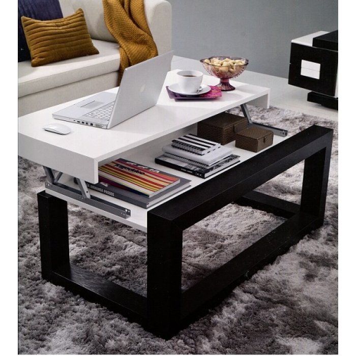 Mesa de Centro 01 SARMSC 34 Mesa de Centro Elevatória com 100X45X60 em Lacado Branco Mate + Carvalho Preto. Ver detalhes