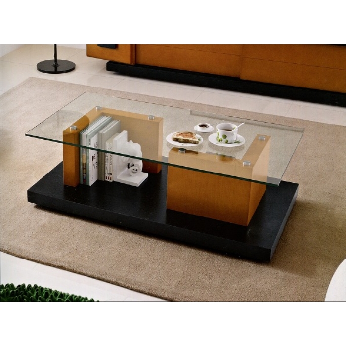 Mesa de Centro 01 SARMSC 38 Mesa de Centro com 110X40X60 em Cerejeira + Carvalho Preto + Vidro incolor. Ver detalhes