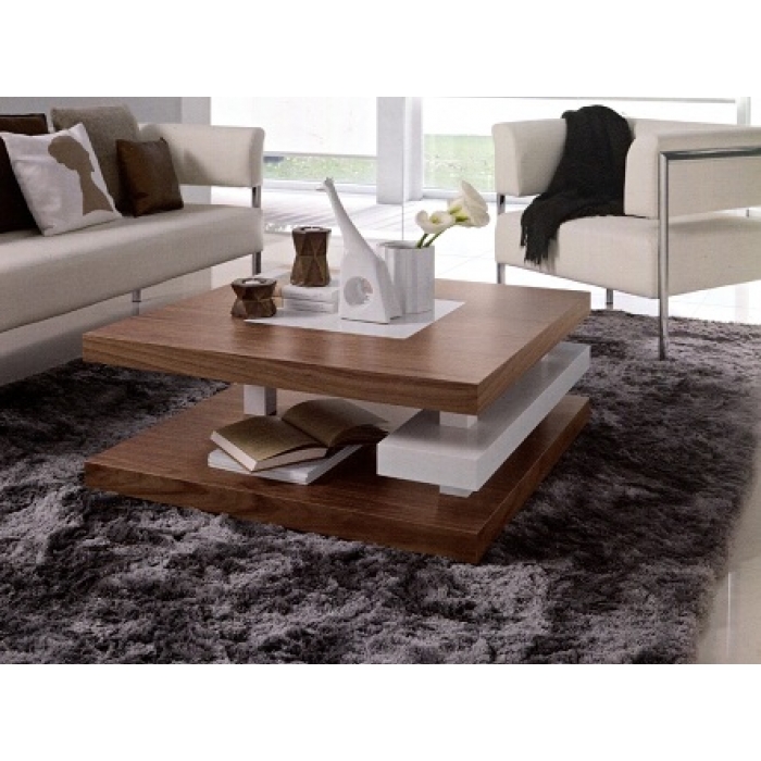 Mesa de Centro 01 SARMSC 36 Mesa de Centro com 90X90X37 em Nogueira + Lacado Branco Mate. Ver detalhes