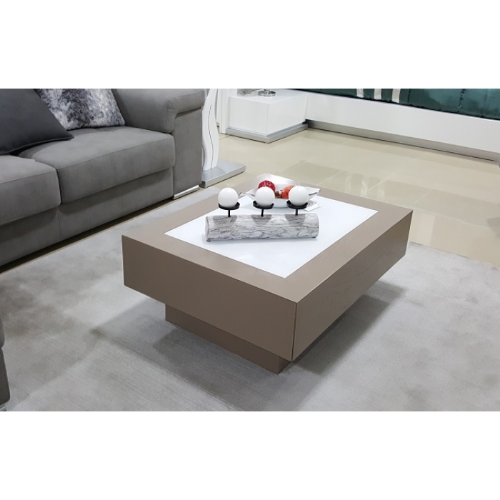 Mesa de centro 01 SARMSC 53 Mesa de centro fixa com 100X45X60 em Nogueira + Lacado Bege Mate. Ver detalhes
