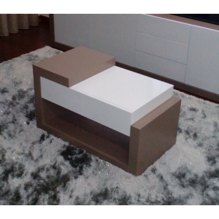 Mesa de Centro 01 SARMSC 31 Mesa de Centro Elevatória com 100X45X50 em Lacado Bege Mate + Nogueira. Ver detalhes