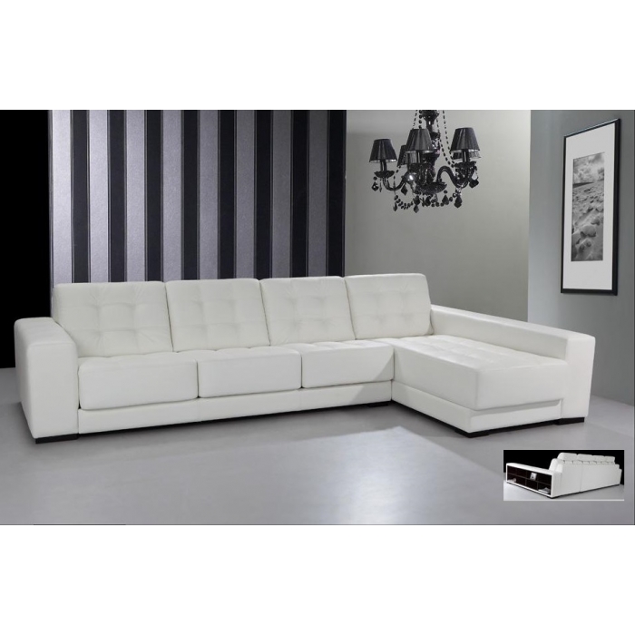 Sofá Domil Canto Sofá em Sintético HUDSON cor 03/01 Pure White. Medidas totais: 330cm x 100cm x 265cm. Ver detalhes