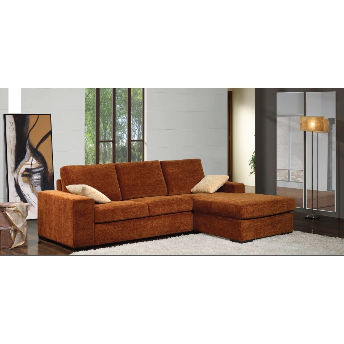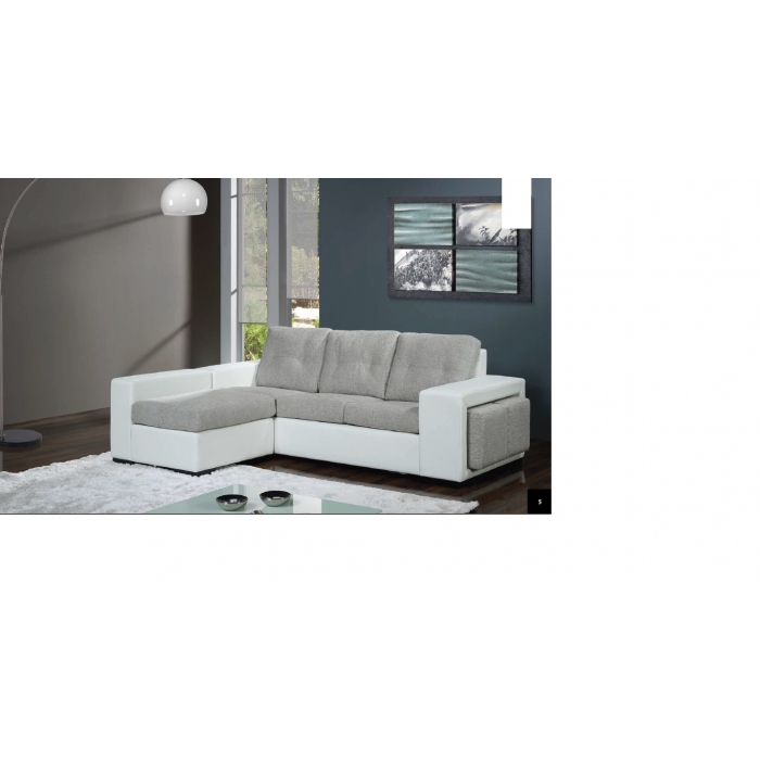Sofá Golden Chaise Sofá em Tecido económico com 2 lugares + 1 lugar chaise longue com 2 bancos. Ver detalhes