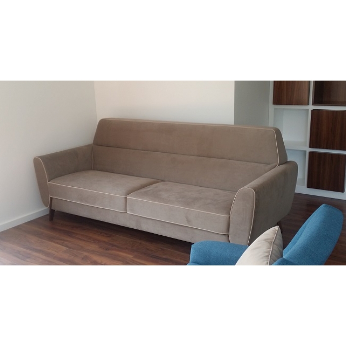 Sofá Finlândia Sofá em Sintético + Tecido FSM Ocre cor 1. Medidas totais: 270cm x 90cm x 230cm. Ver detalhes